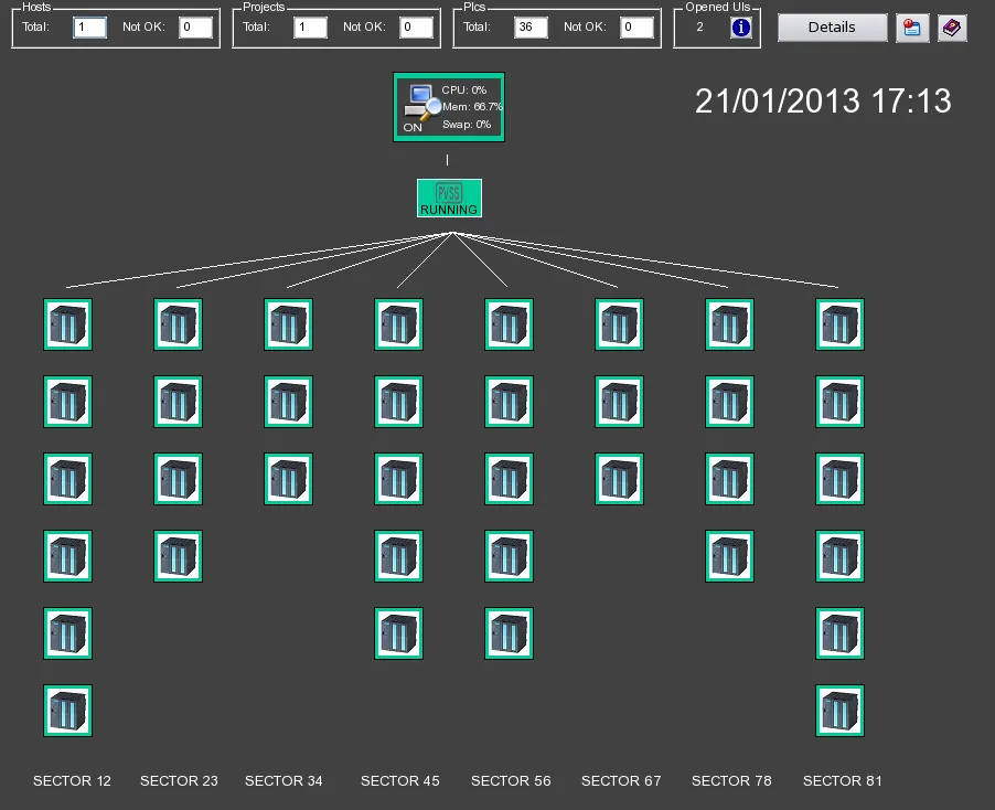 This is a useful tool to diagnose issues related with PLC and SCADA systems. In addition, it keeps a log with the last alarms received from the powering interlock controllers.